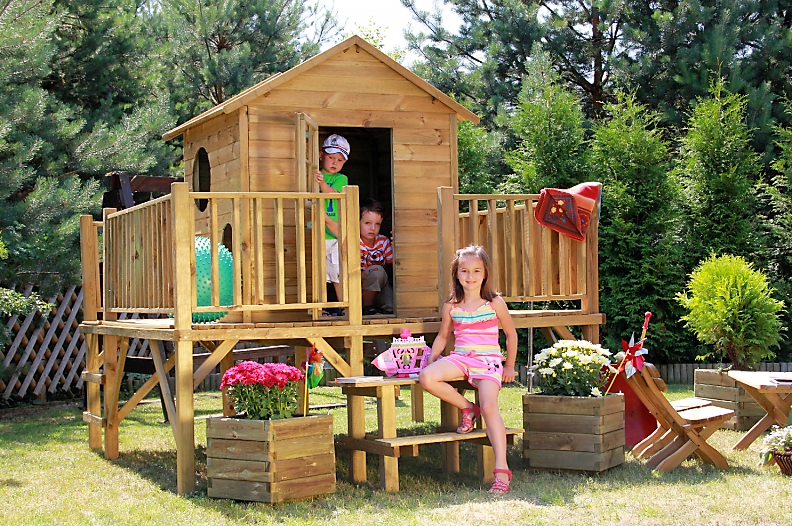 Wiele osób w dzieciństwie marzyło o domku na drzewie albo „tajnej bazie”. Dziś możesz sprawić, by marzenia Twoich dzieci stały się rzeczywistością. W ofercie sklepu FamilyGarden.pl znajdziesz produkty wysokiej jakości od polskich producentów. Asortyment możesz dopasować do wieku Twoich dzieci, ich potrzeb i wielkości posesji. Wśród oferowanych domków dla dzieci znajdziesz modele parterowe, np. Maria Szymek Amelka oraz „piętrowe” (np. Gutek i Thomas), z drabinkami (Jerzyk) i zjeżdżalniami (np. Hubcio) albo tarasami (Maciek, Hubcio, Szymek).