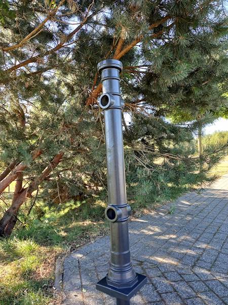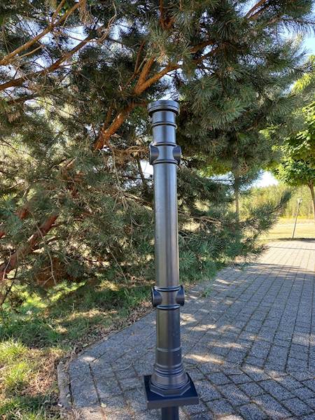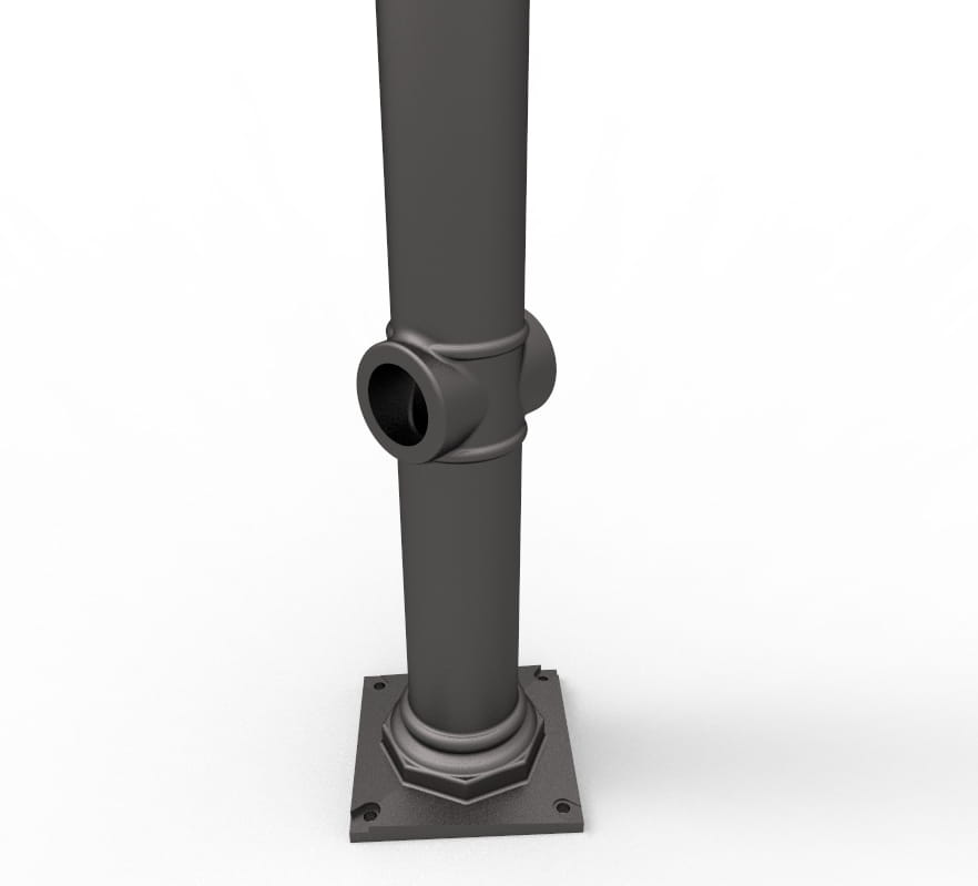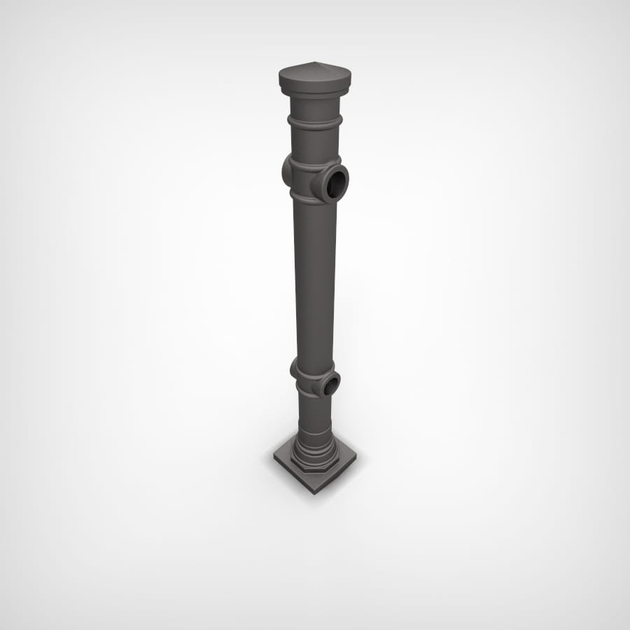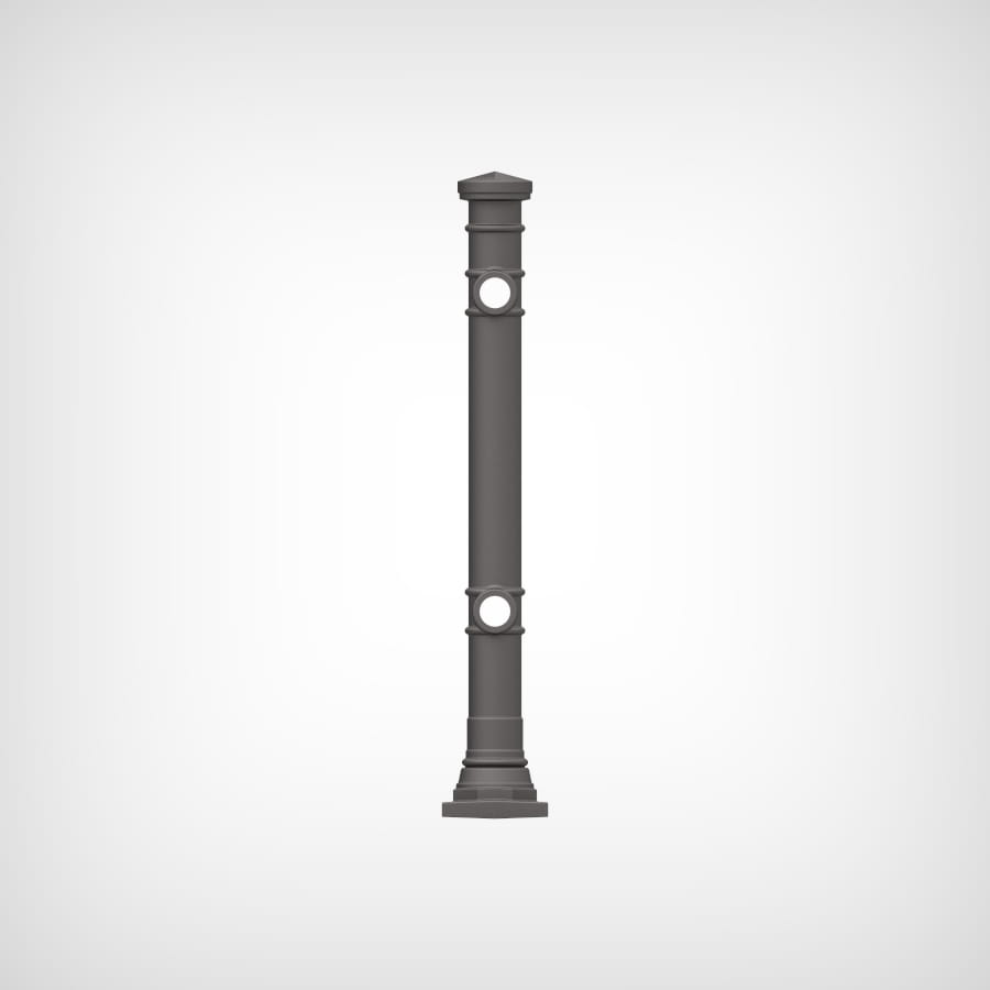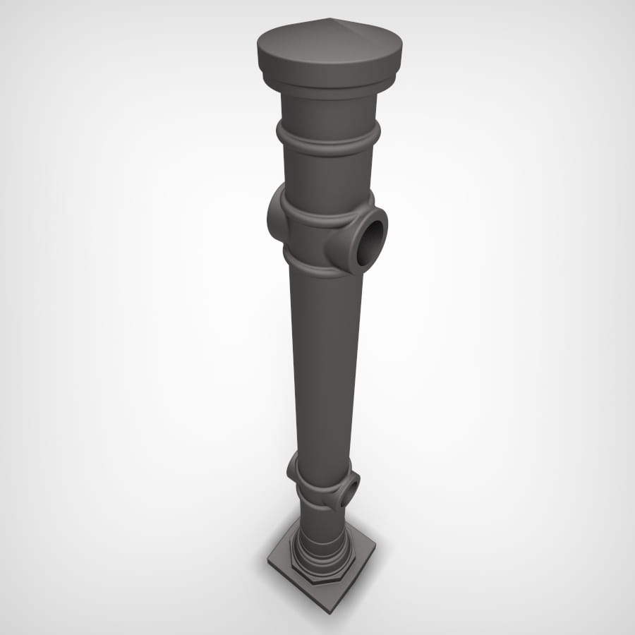 Słupek wykonany z żeliwa. Oferowany jako słupek blokujący uliczny z możliwością zawieszenia poręczy lub łańcucha. Dzięki swojemu uniwersalnemu wyglądowi, słupki mogą być stosowane zarówno w starszych, jak i nowoczesnych dzielnicach miasta, malowany proszkowy na kolor czarny. Słupki ochronne są jednym z elementów małej architektury.